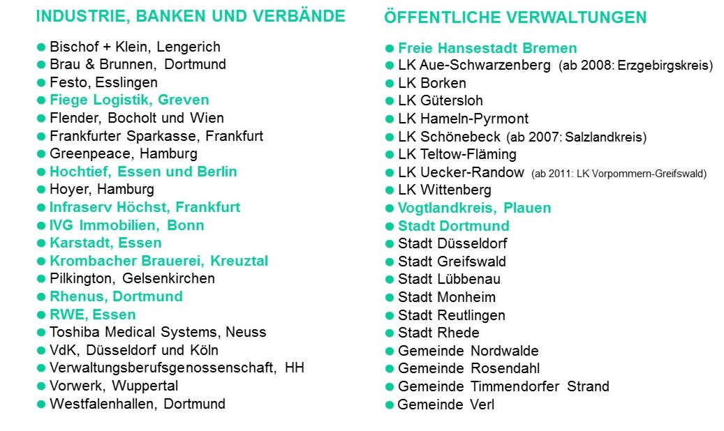 Details über die grün gekennzeichneten Referenzen stehen Ihnen als PDF-Datei zum download zur Verfügung: